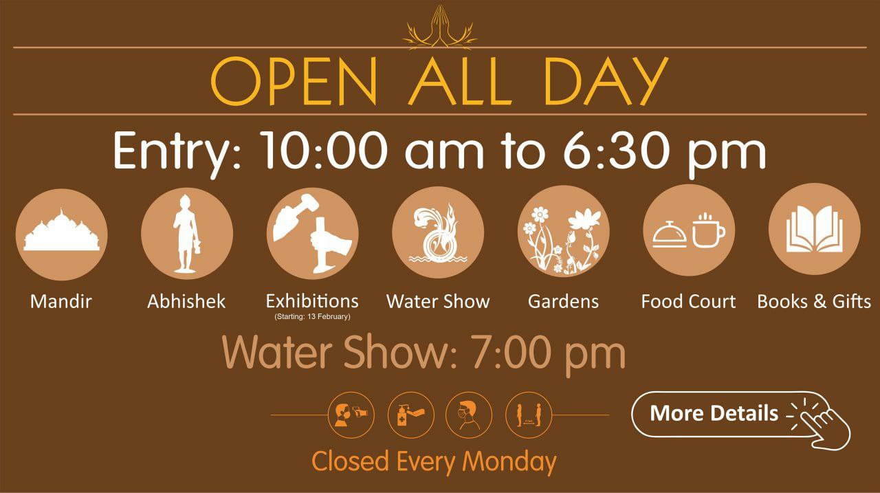Exhibitions on Hinduism, including Bhagwan Swaminarayan's life and teachings such as prayer, compassion, and non-violence.