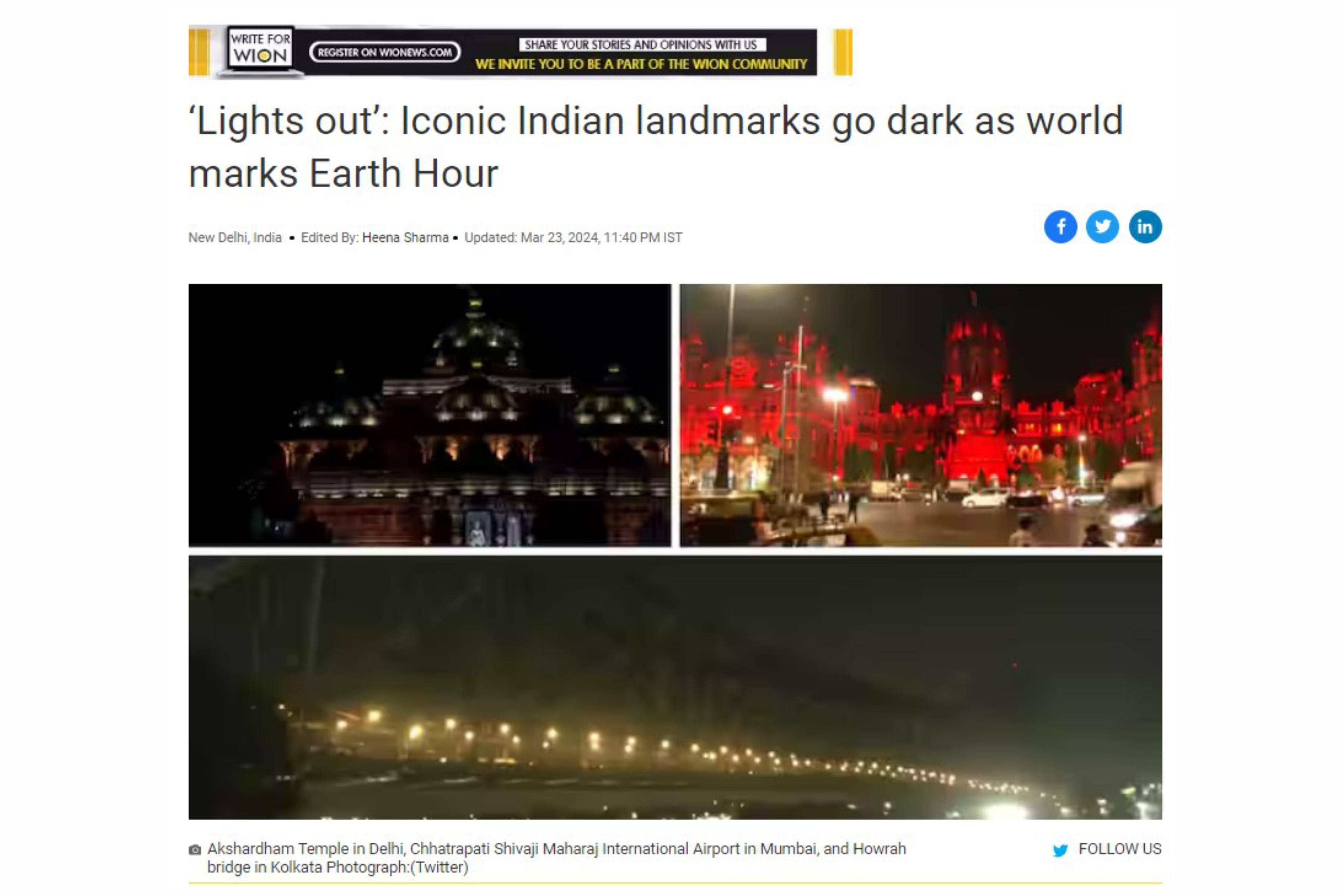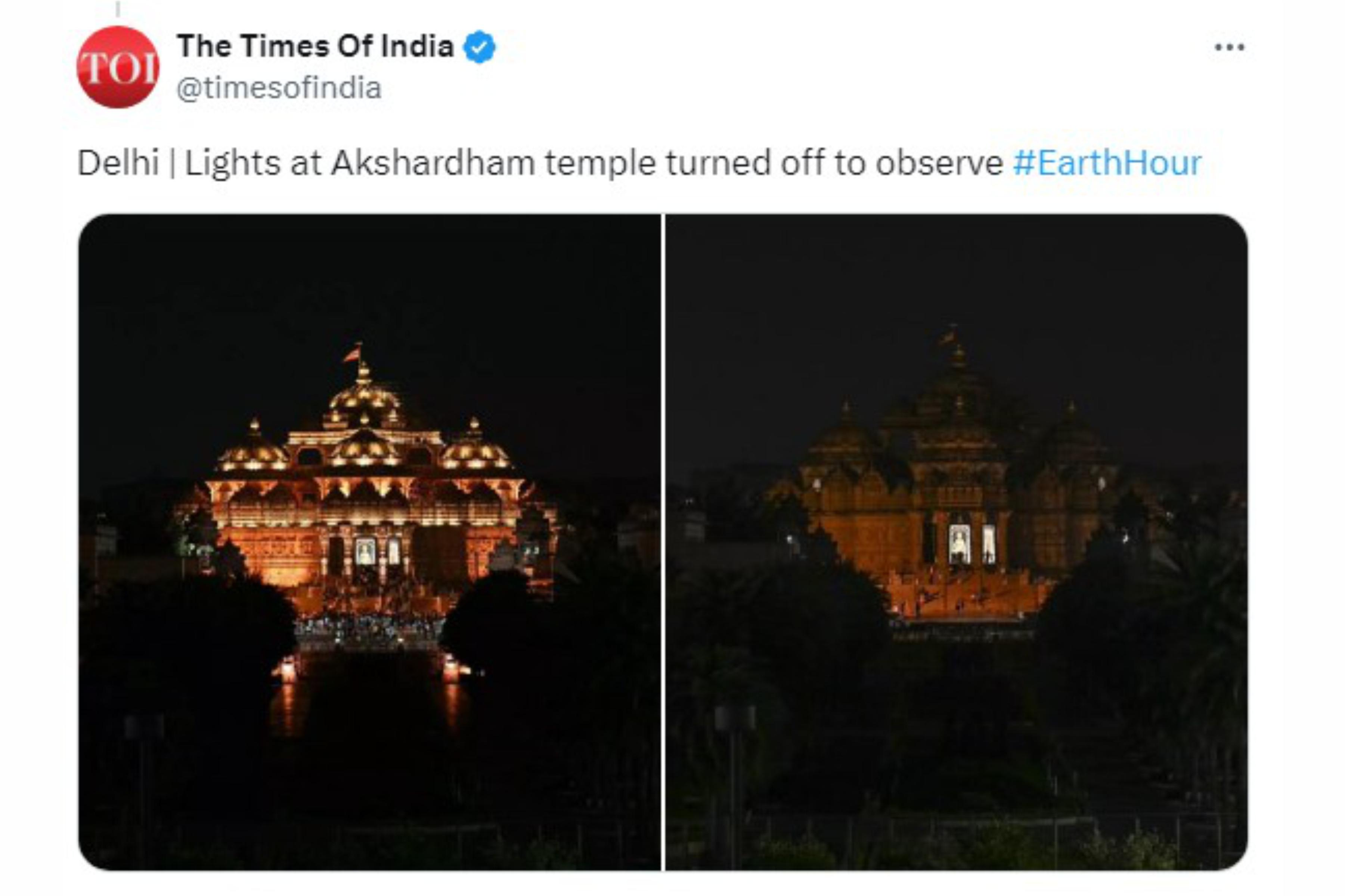 Swaminarayan Akshardham in New Delhi participated in Earth Hour 2024, organized by the WWF (World Wide Fund for Nature), in support of protecting our planet.