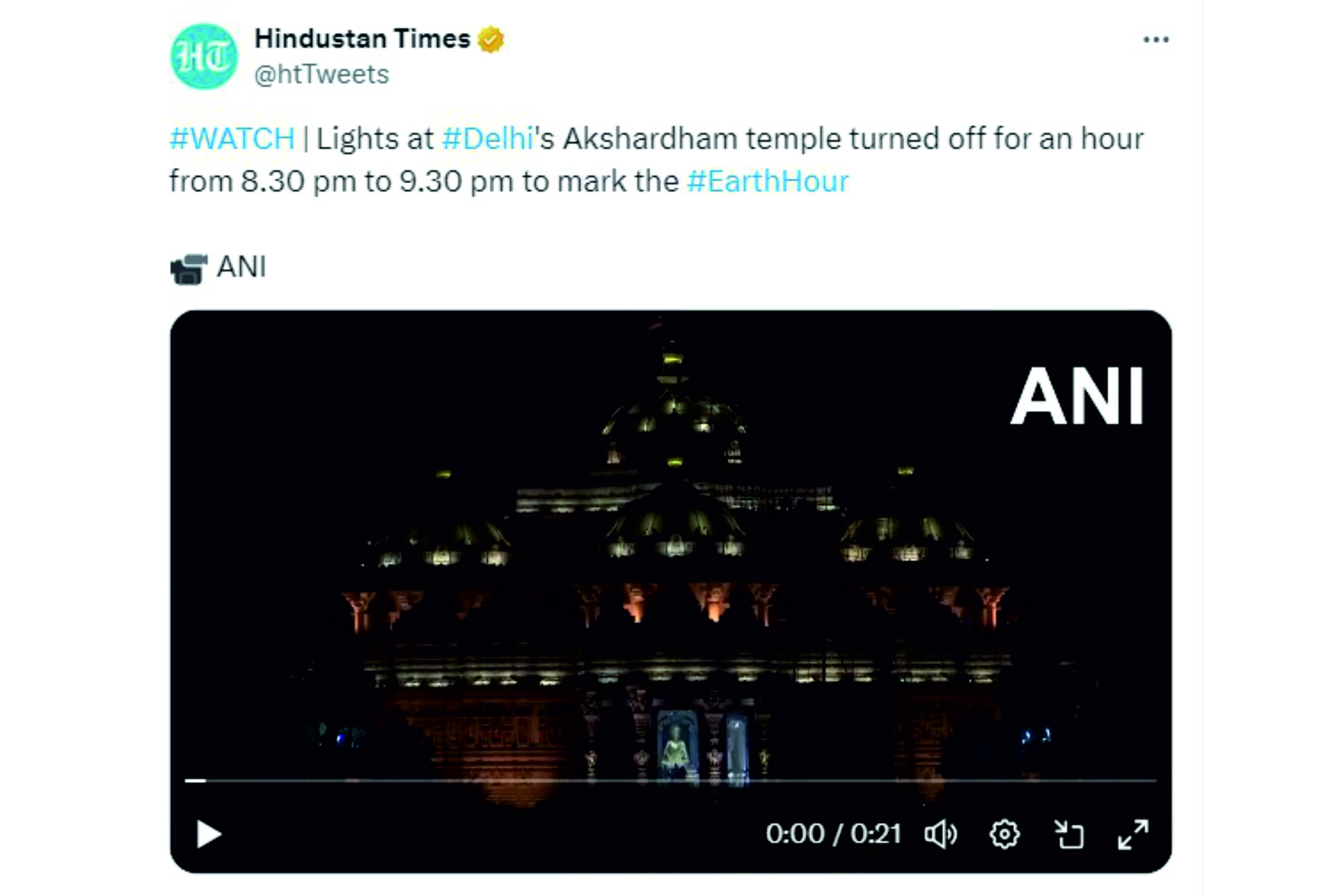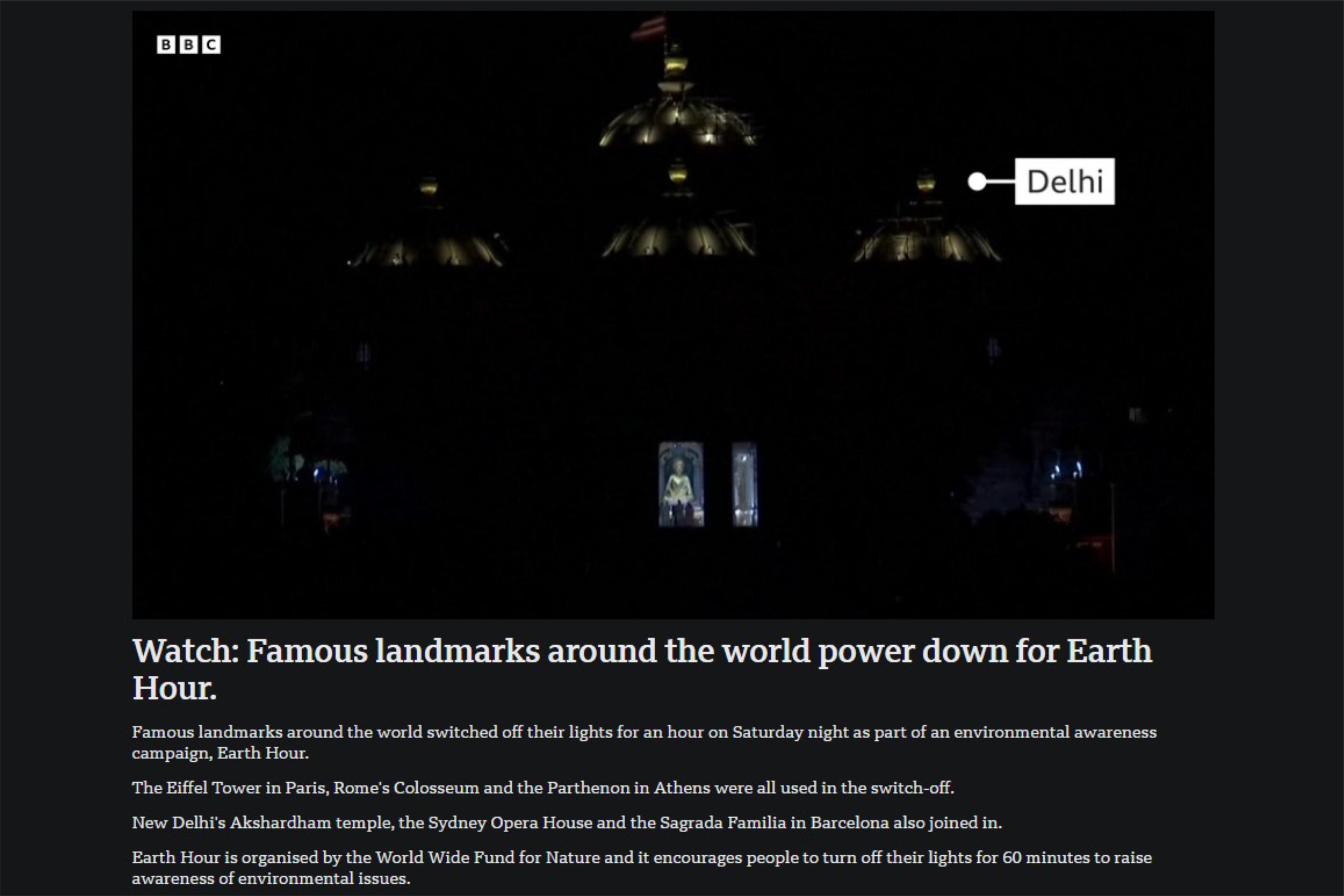 Earth Hour 2024 Observed at Swaminarayan Akshardham, New Delhi