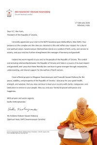 In a personal letter to President Karis, His Holiness Mahant Swami Maharaj conveyed his gratitude to the president for his visit and offered prayers for the peace and prosperity of Estonia and its citizens, as well as for the president’s health and success. He also expressed hope that the friendly ties between Estonia and India continue to strengthen through mutual understanding and cooperation.