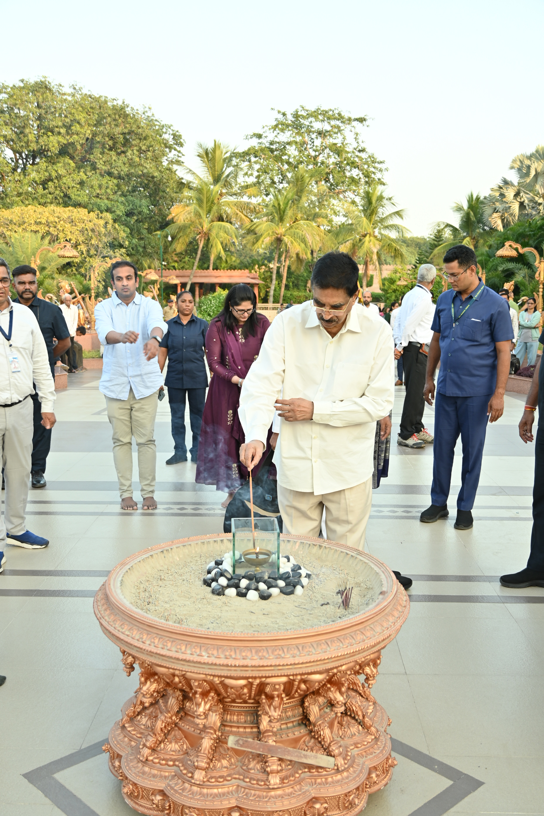 Hon. Dr. Hari Babu Kambhmpati, Governor of Odisha, visited Swaminarayan Akshardham in Gandhinagar, where he was traditionally welcomed by senior volunteers of Akshardham.