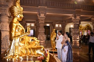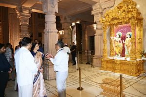 From there, he proceeded to the Akshardham Mahamandir. He was amazed by the art and architecture of the mandir. Inside the mandir, he offered flowers and prayed before the murti of Bhagwan Swaminarayan.