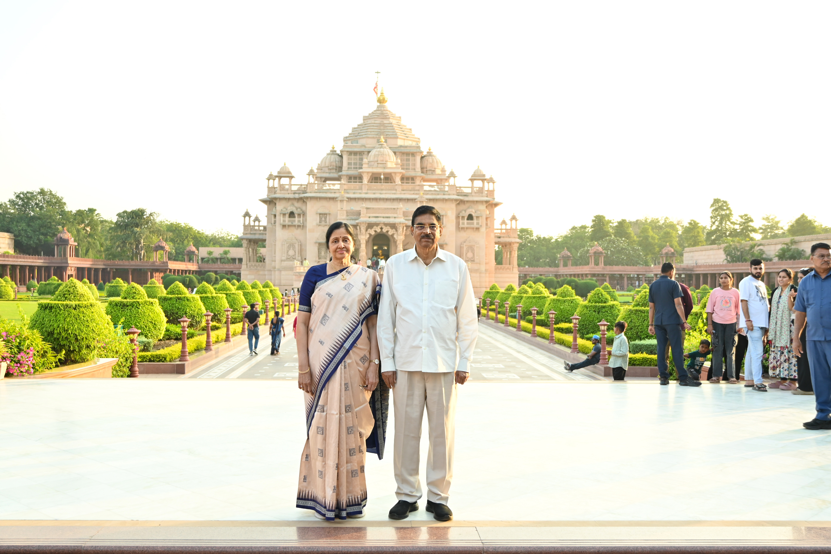 9 November 2025Hon. Dr. Hari Babu Kambhmpati, Governor of Odisha, visited Swaminarayan Akshardham in Gandhinagar, where he was traditionally welcomed by senior volunteers of Akshardham.First, in the model room, the governor was introduced to the Akshardham complex, its creator Pramukh Swami Maharaj and his successor Mahant Swami Maharaj. Afterwards, he performed abhishek of Shri Nilkanth