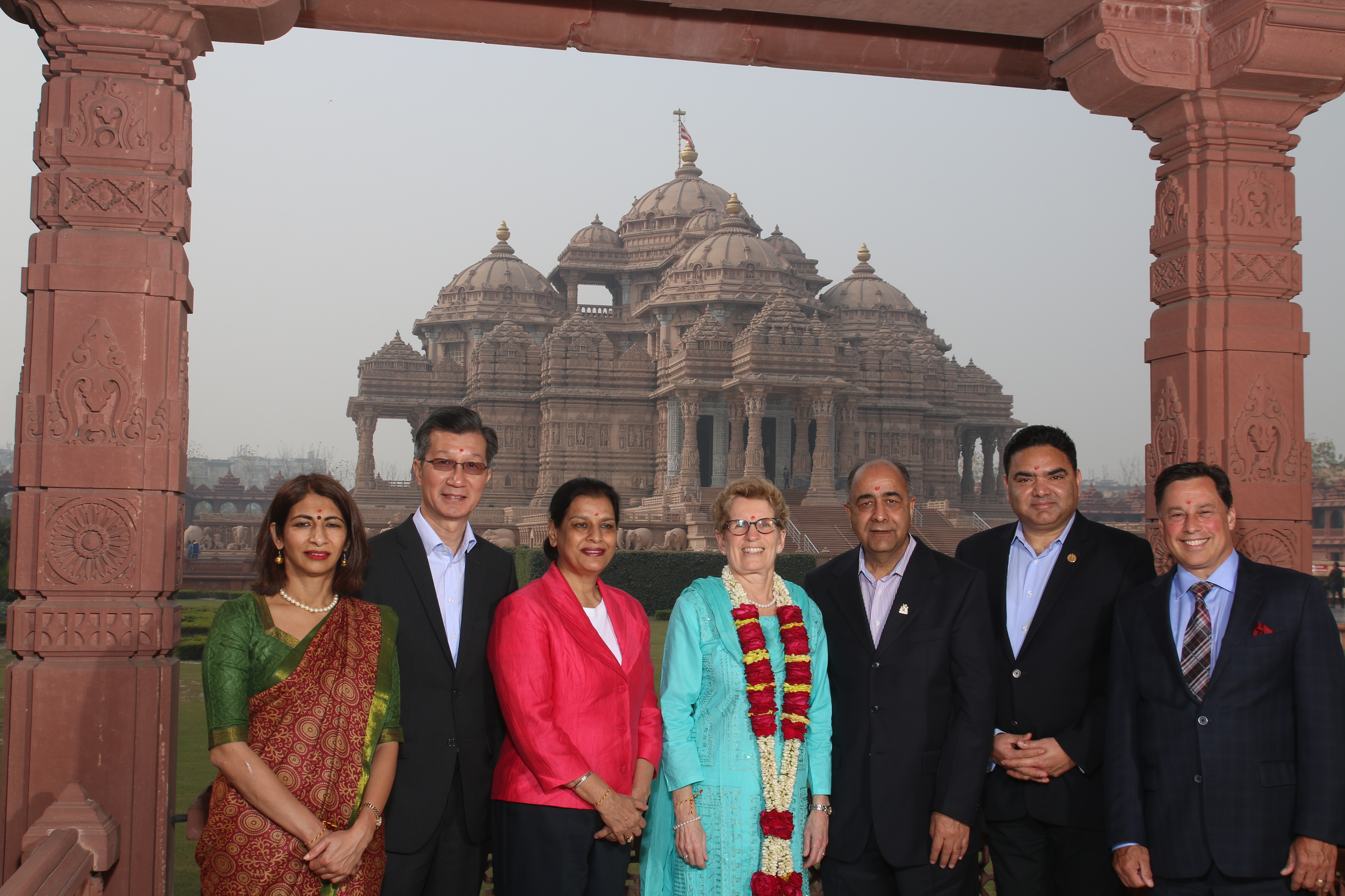 Premier Wynne’s Ontario thirty member delegation included Minister Michael Chan (MPP), Minister Brad Duguid (MPP), Associate Minister Dipika Damerla (MPP), Minister Vic Dhillon (MPP), Minister Harinder Takhar (MPP), Minister Amrit Mangat (MPP), Deputy High Commissioner Jess Dutton from the Canadian High Commission in New Delhi and Jane Rounthwaite serving as the President and Managing Partner at the Osborne Group.