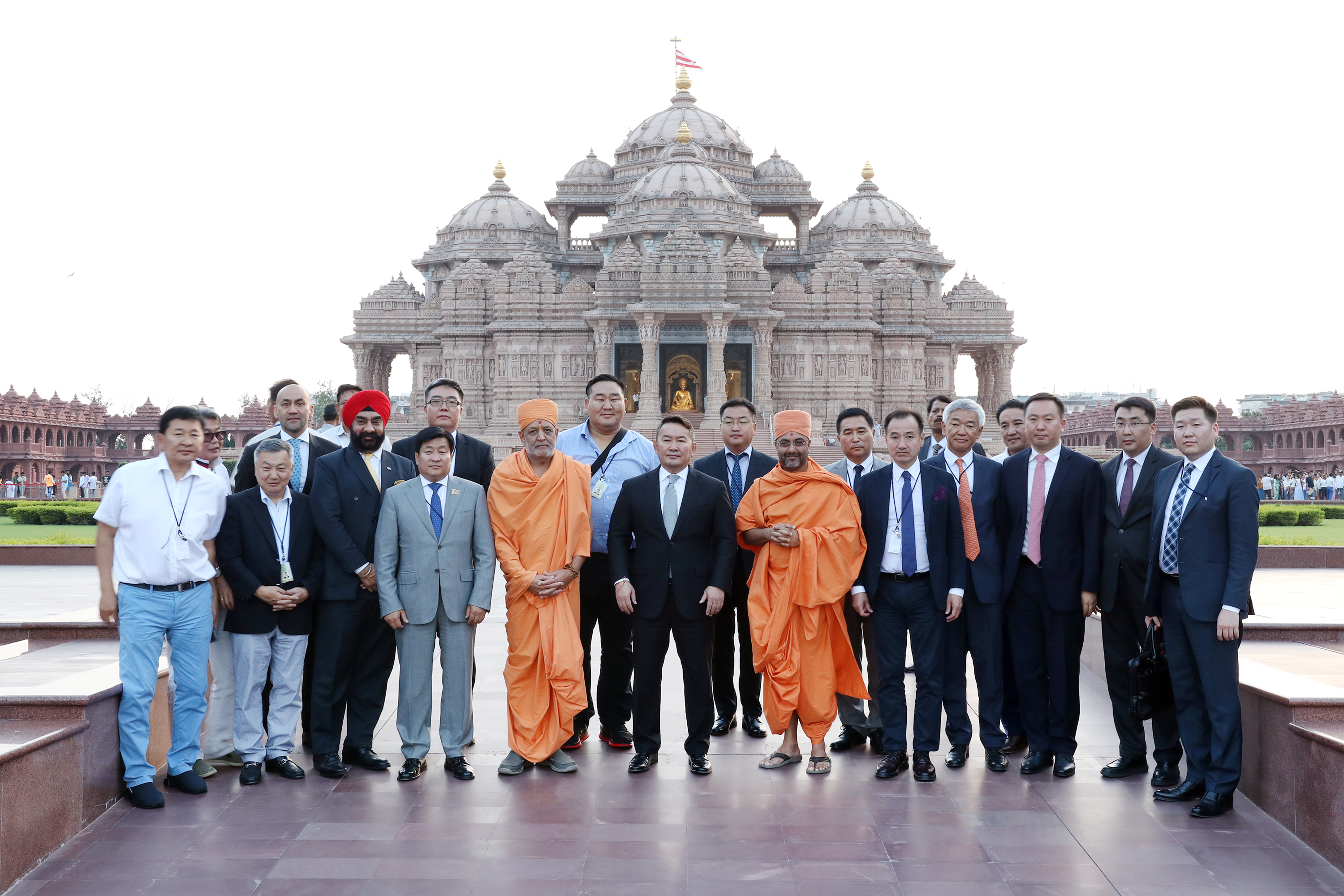 His Excellency President Khaltmaagiin Battulga of Mongolia visited Swaminarayan Akshardham in New Delhi as part of a five-day visit to India to deepen ties between the two nations.