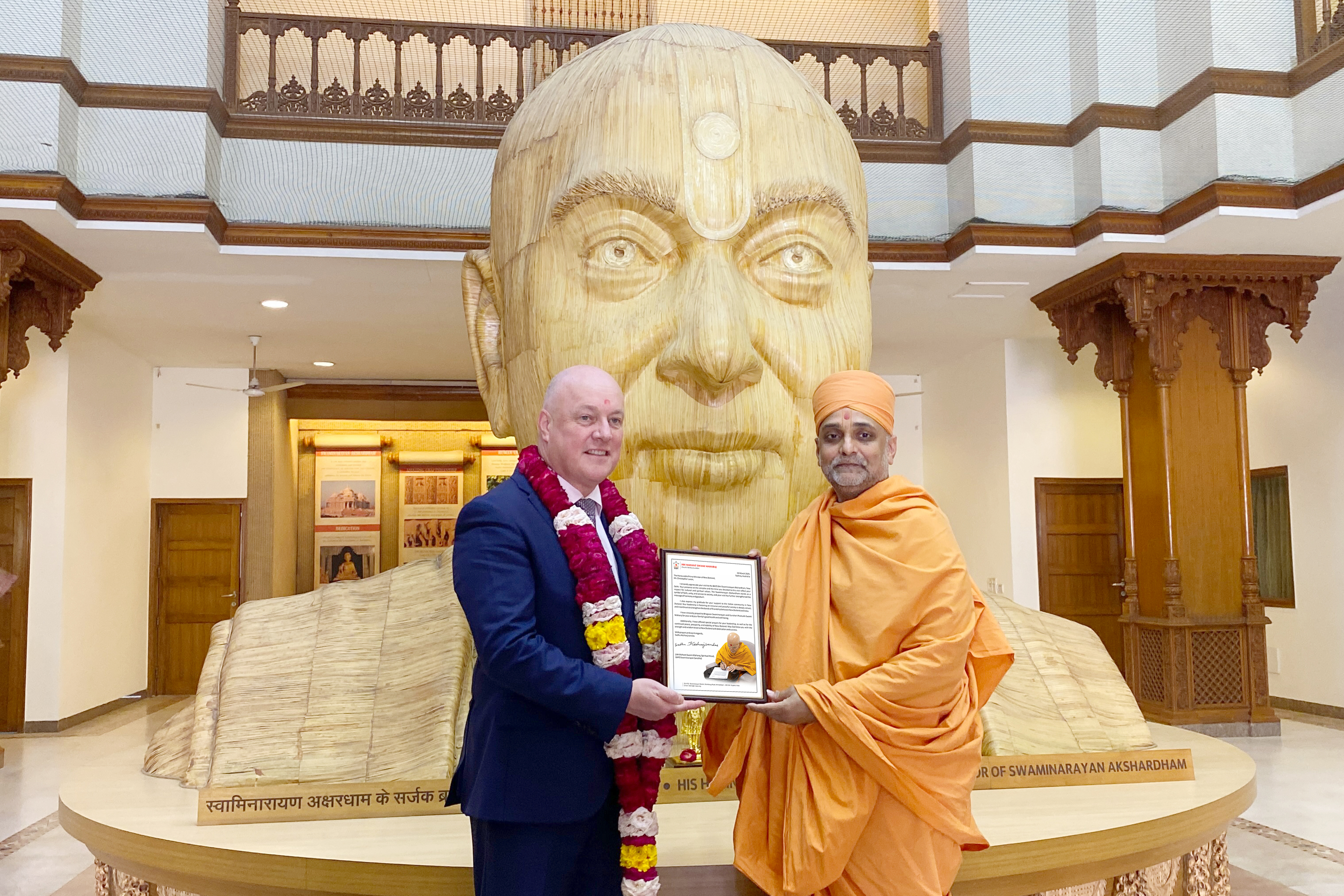 The Rt Hon Christopher Luxon, Prime Minister of New Zealand, visited BAPS Swaminarayan Akshardham in New Delhi, with a 110-member delegation, including senior government officials, ministers, business leaders, and community representatives from New Zealand.