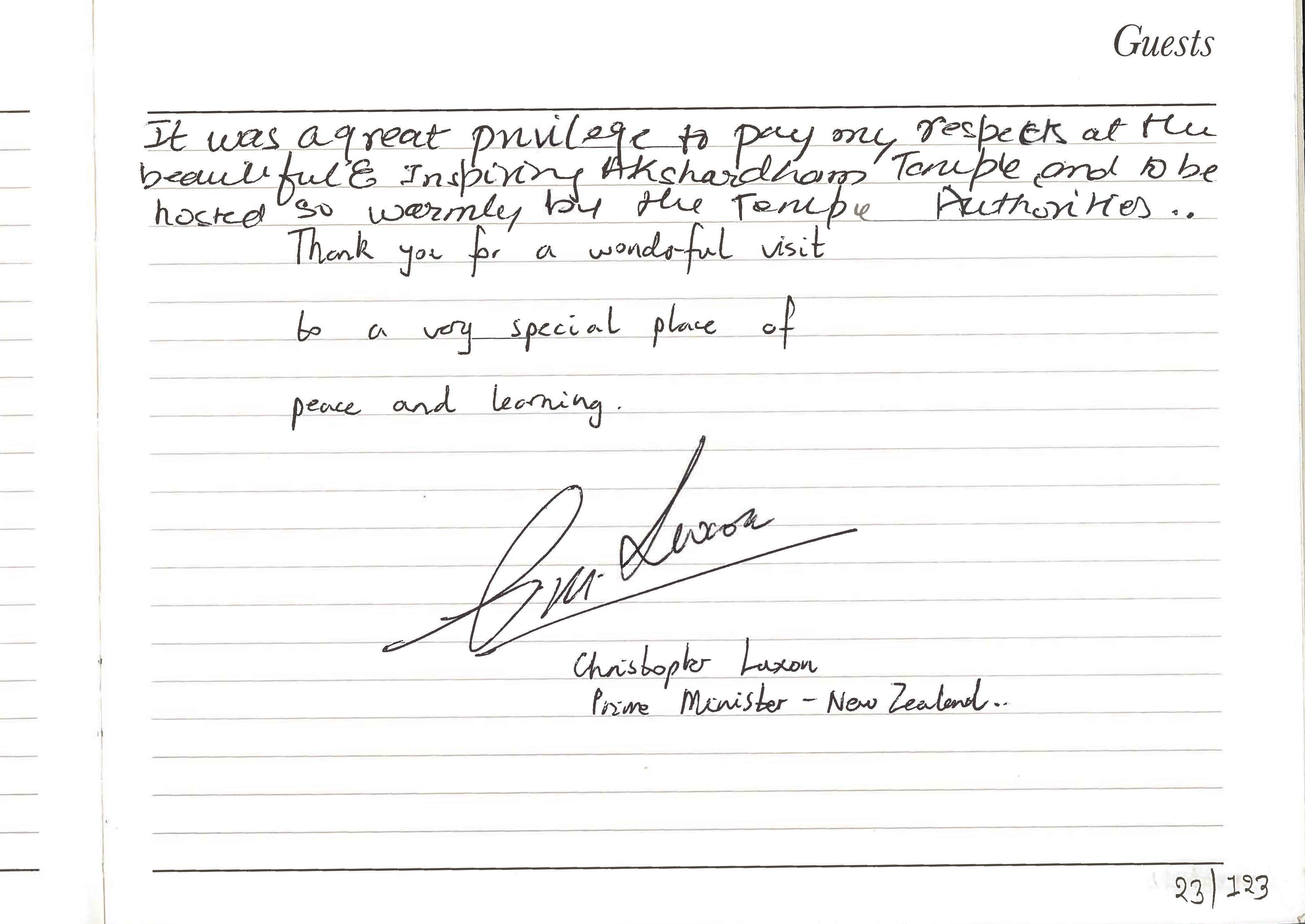 “The Hindu community in New Zealand has made a large contribution to our country. Today in Delhi, I paid my respects at a place sacred to many Kiwi-Indians – the BAPS Swaminarayan Akshardham Temple.”