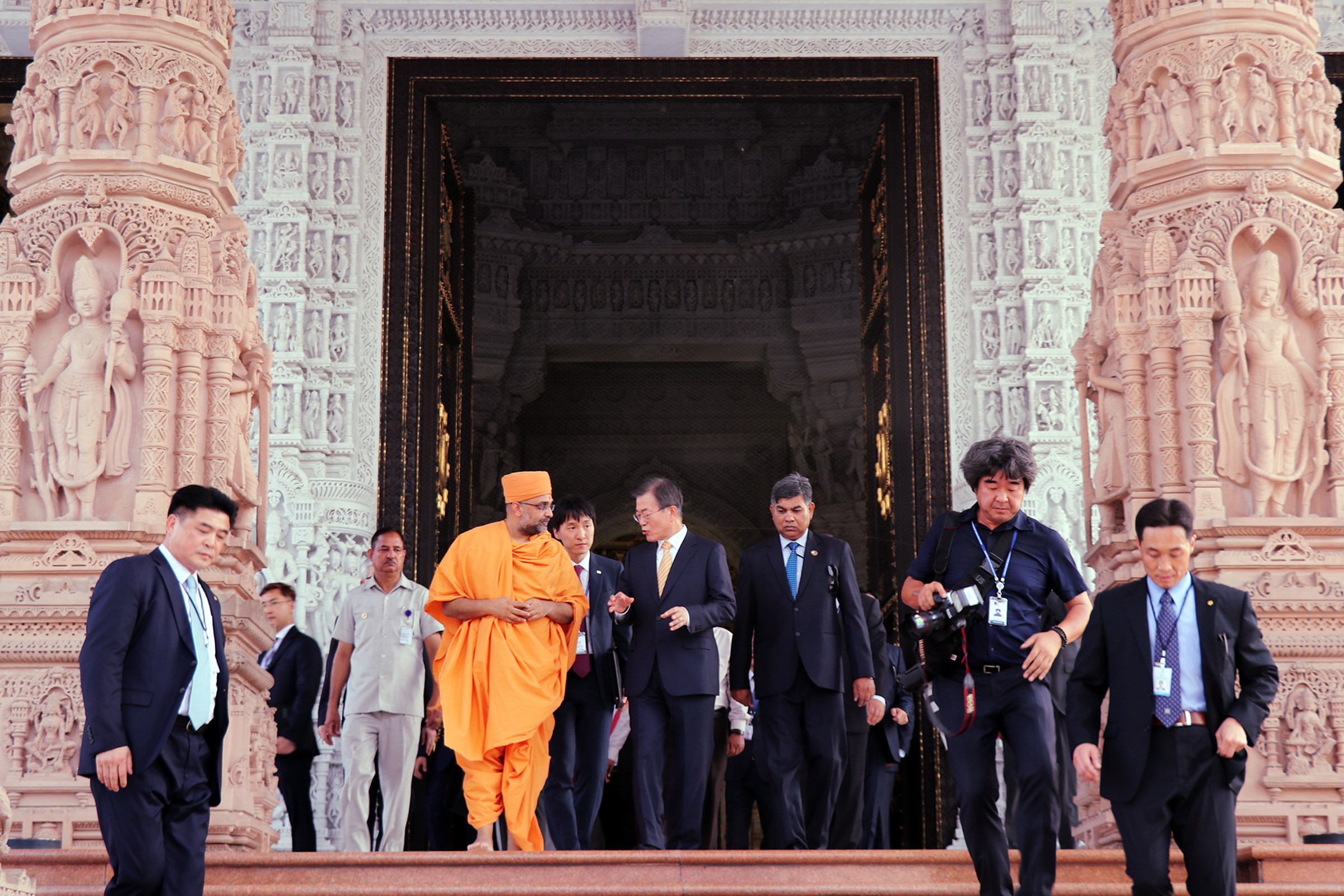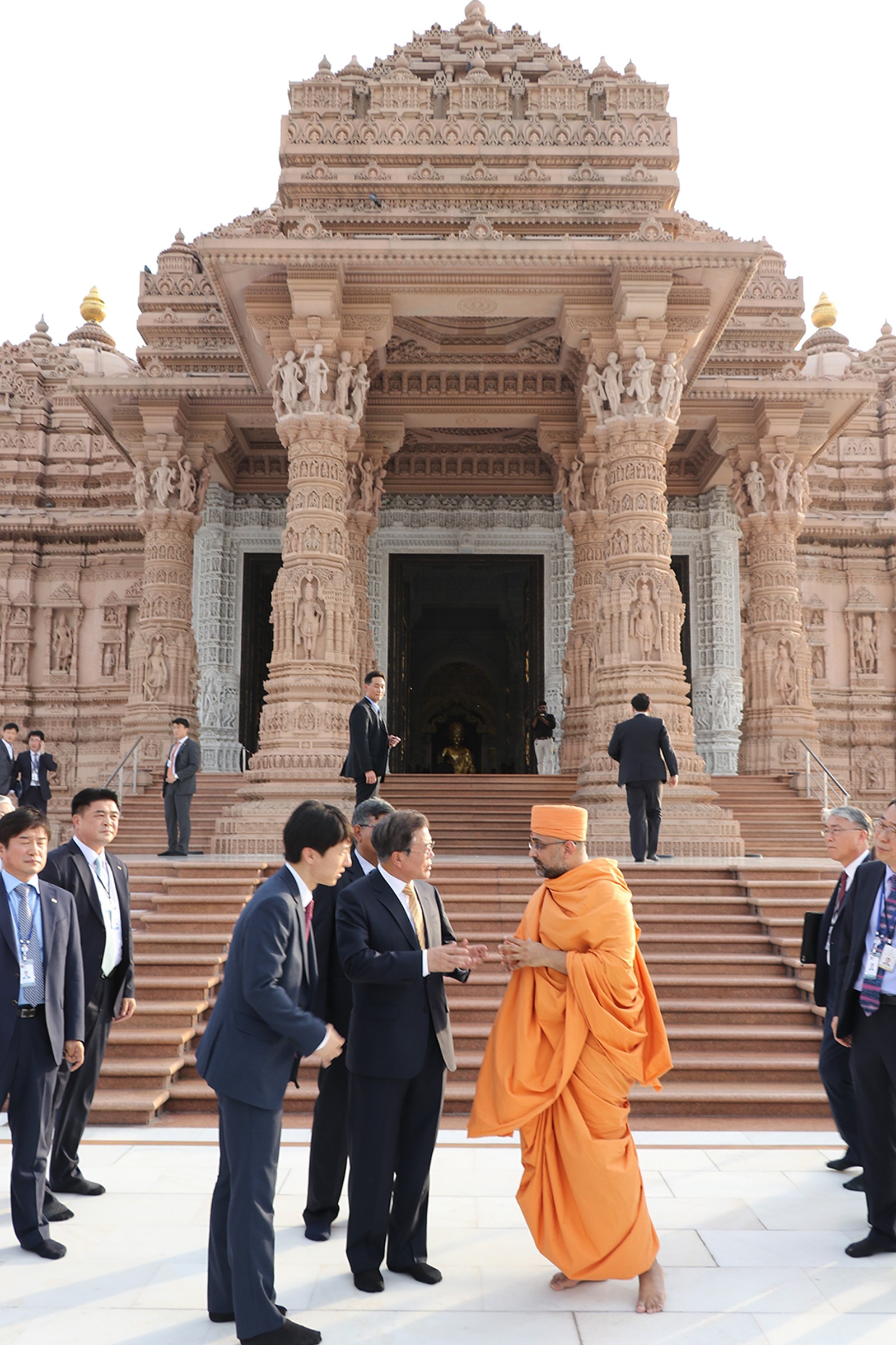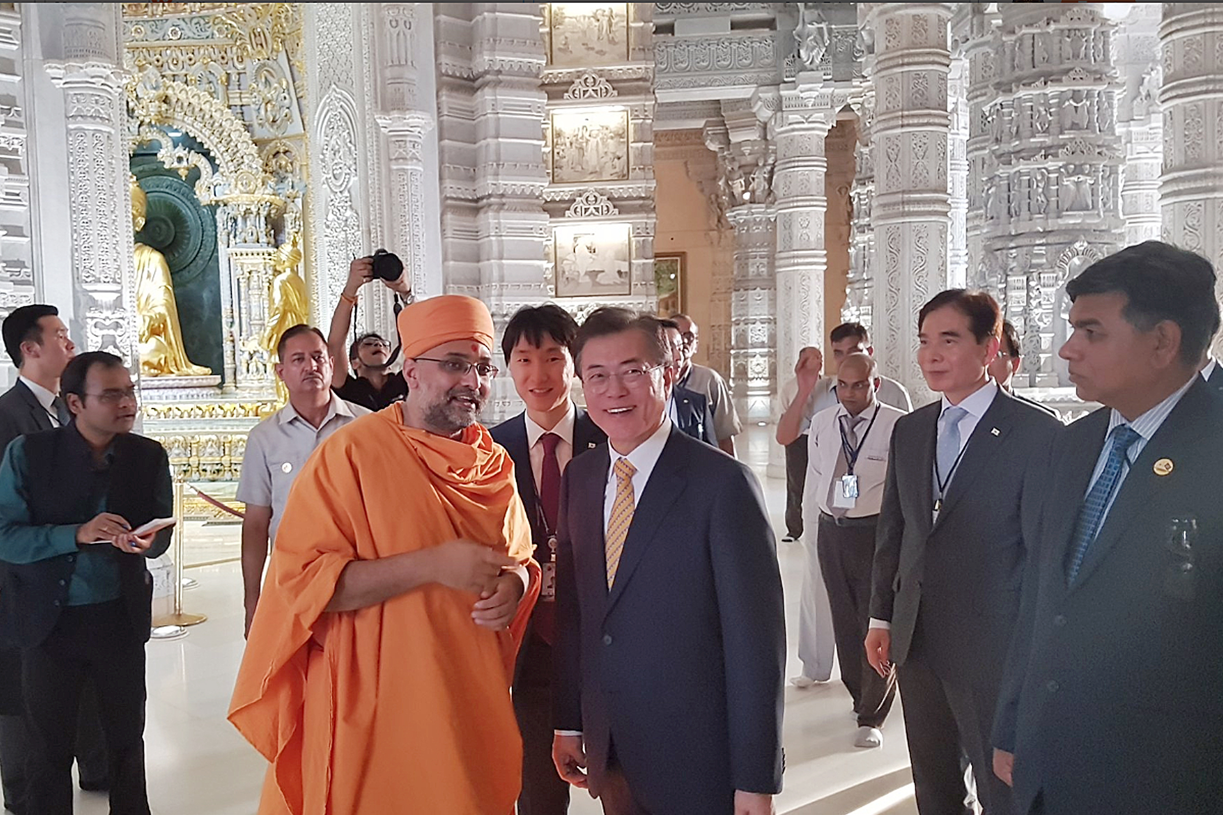President Moon and First Lady Jung-sook offered their respects at the Swaminarayan Akshardham Mandir and admired the Mandir’s art and architecture.