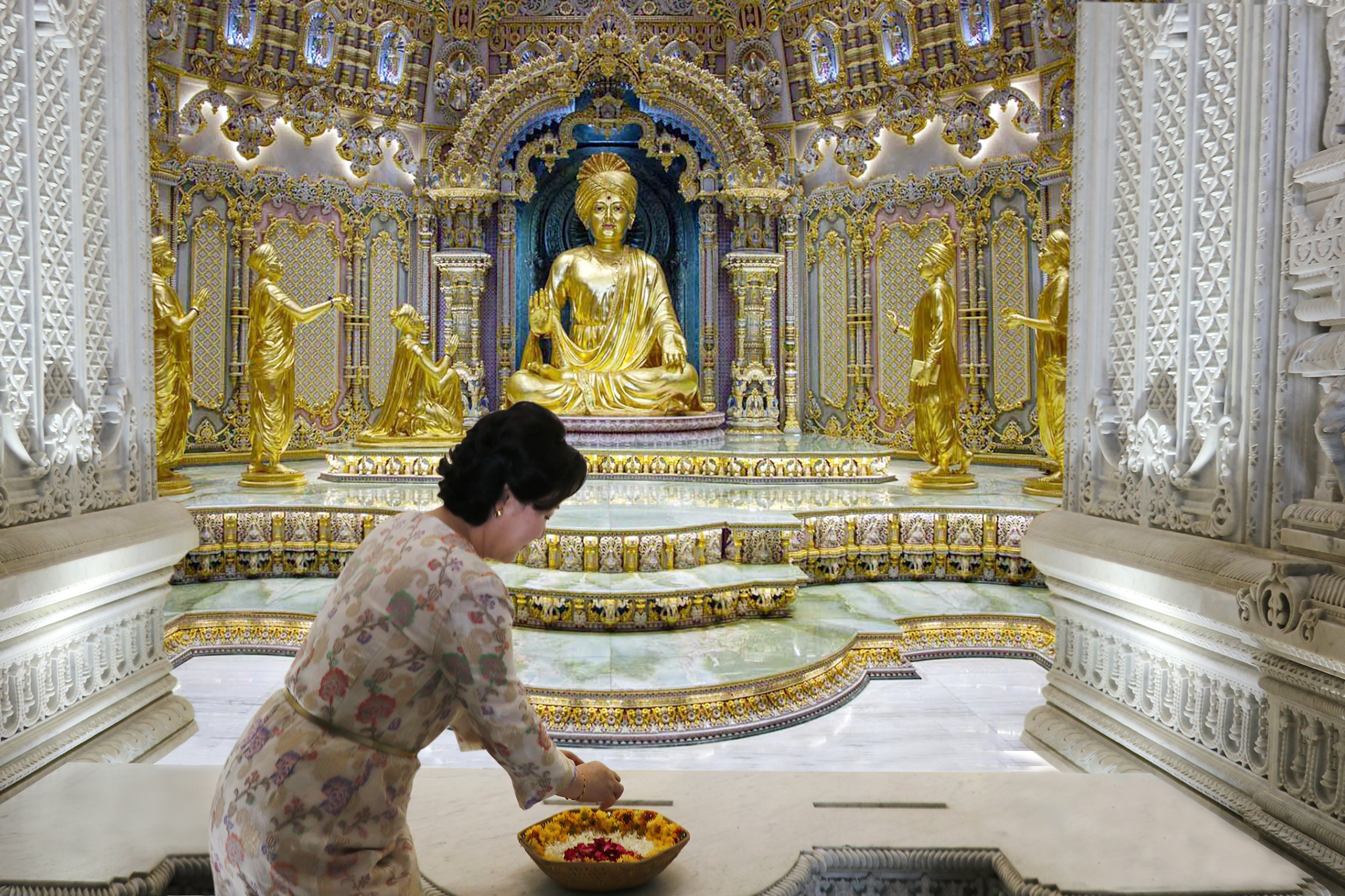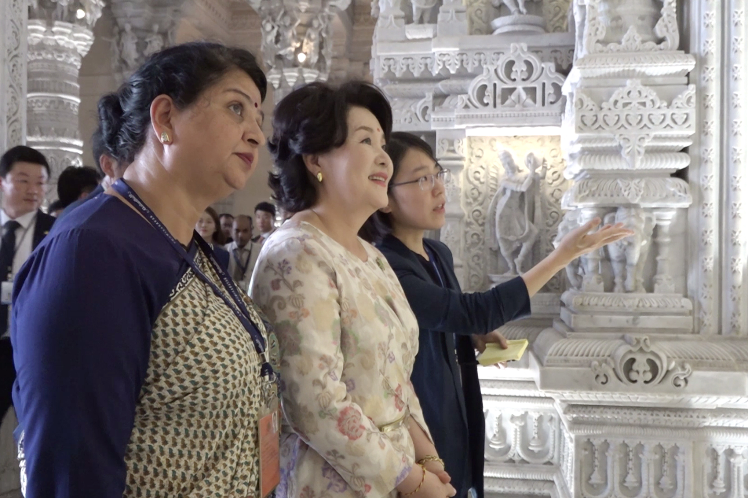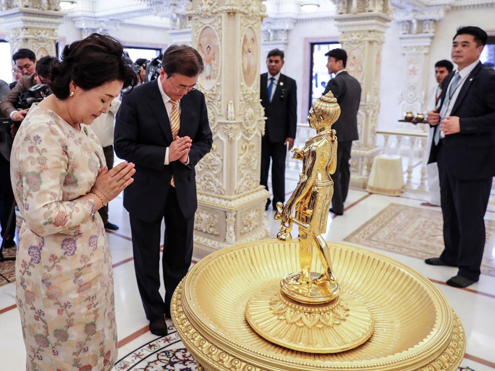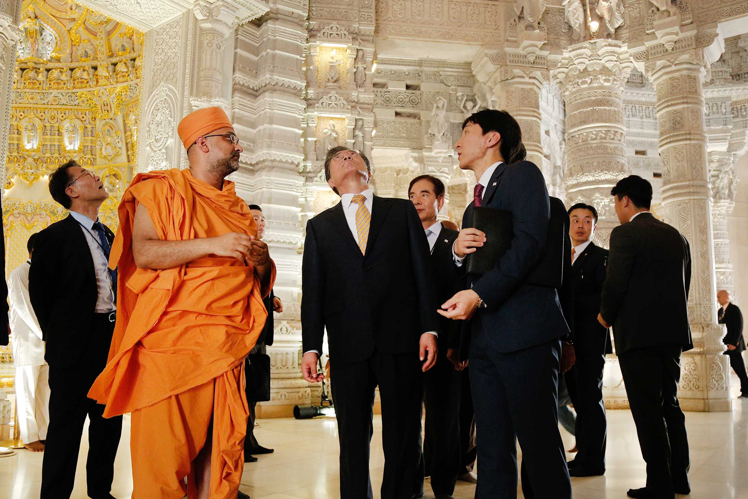 President Moon and First Lady Jung-sook offered their respects at the Swaminarayan Akshardham Mandir and admired the Mandir’s art and architecture.