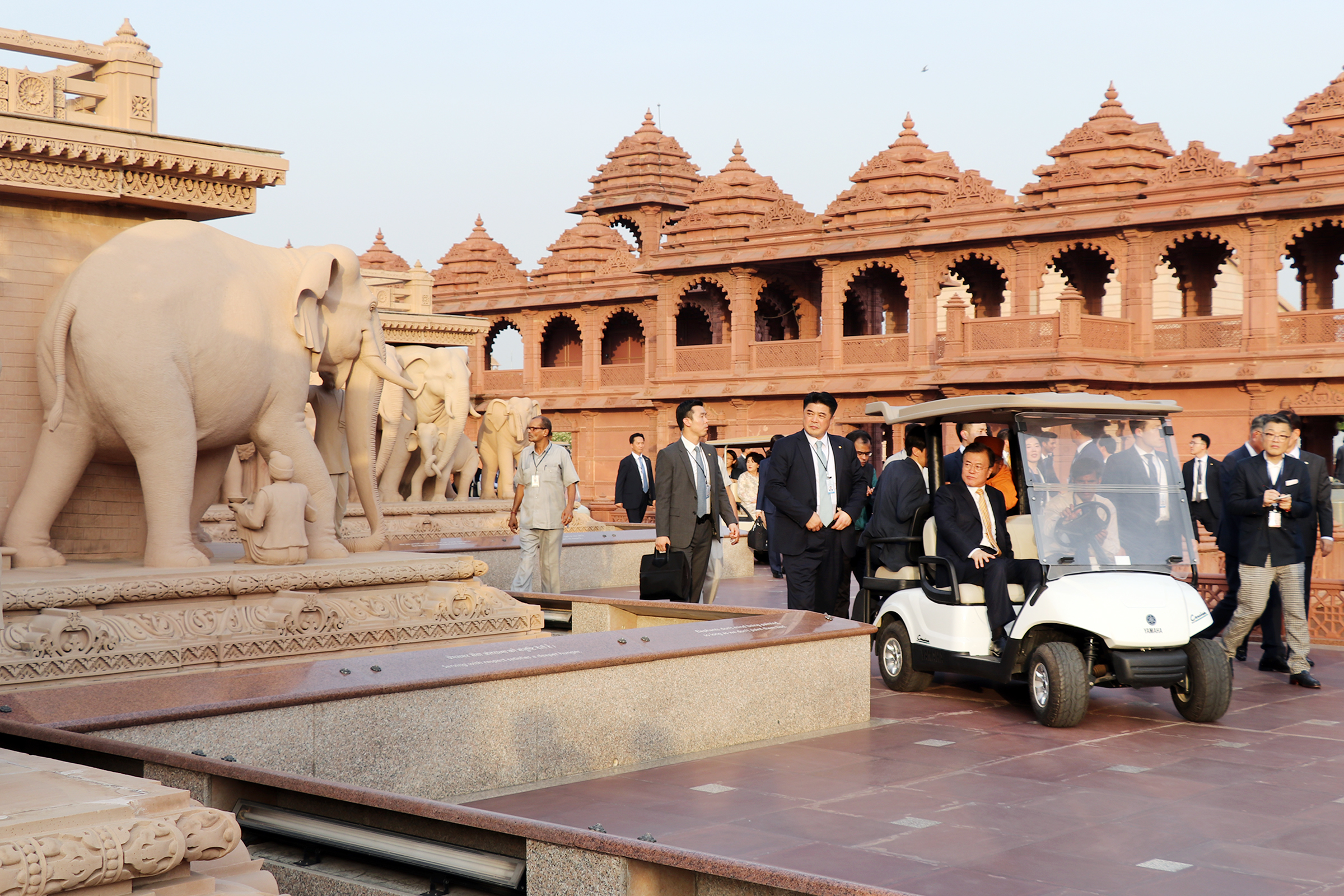 President Moon then viewed the Gajendra Pithika (Elephant Plinth) that includes 148 lifelike carved stone elephants depicting messages of social harmony, peace, and spirituality.
