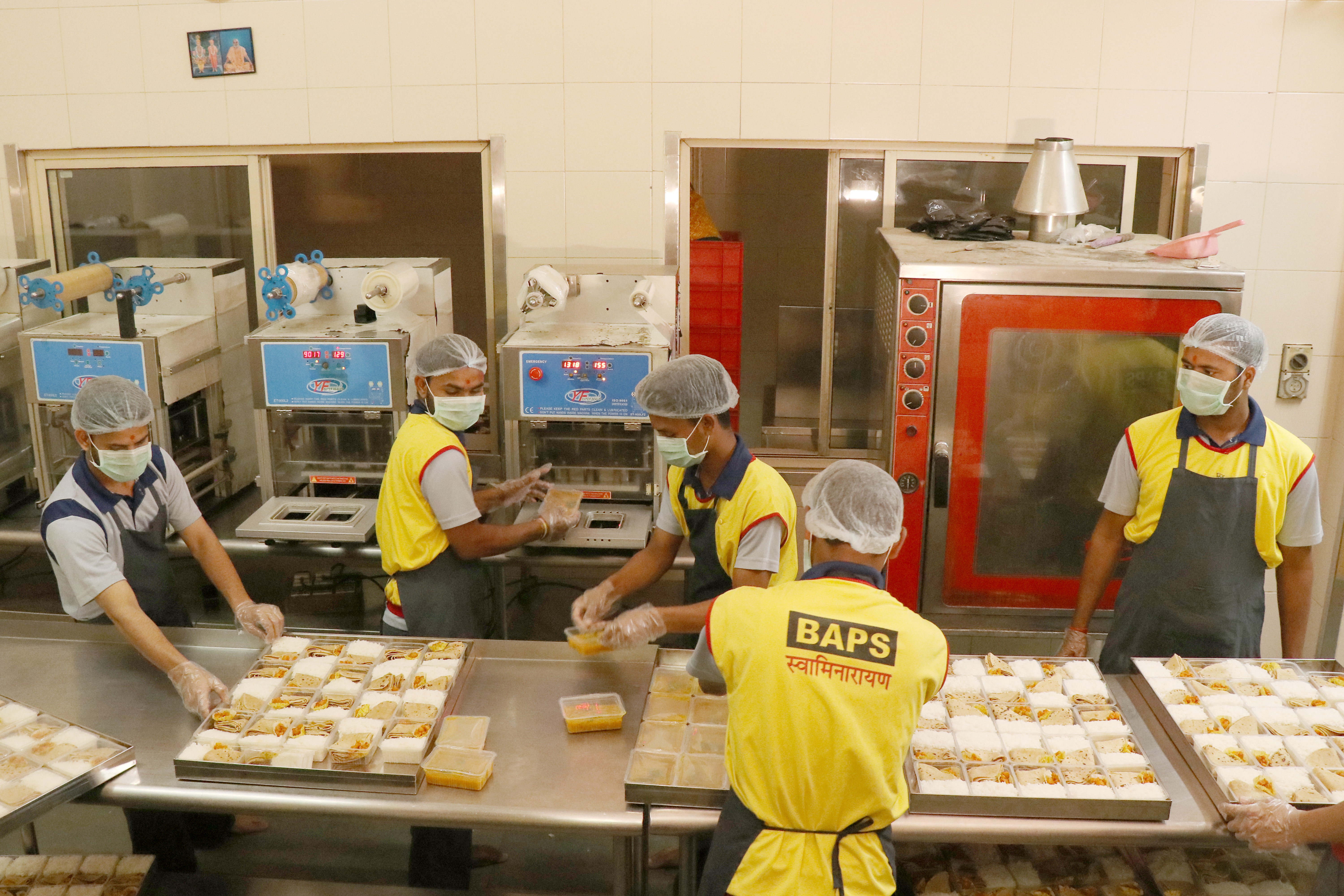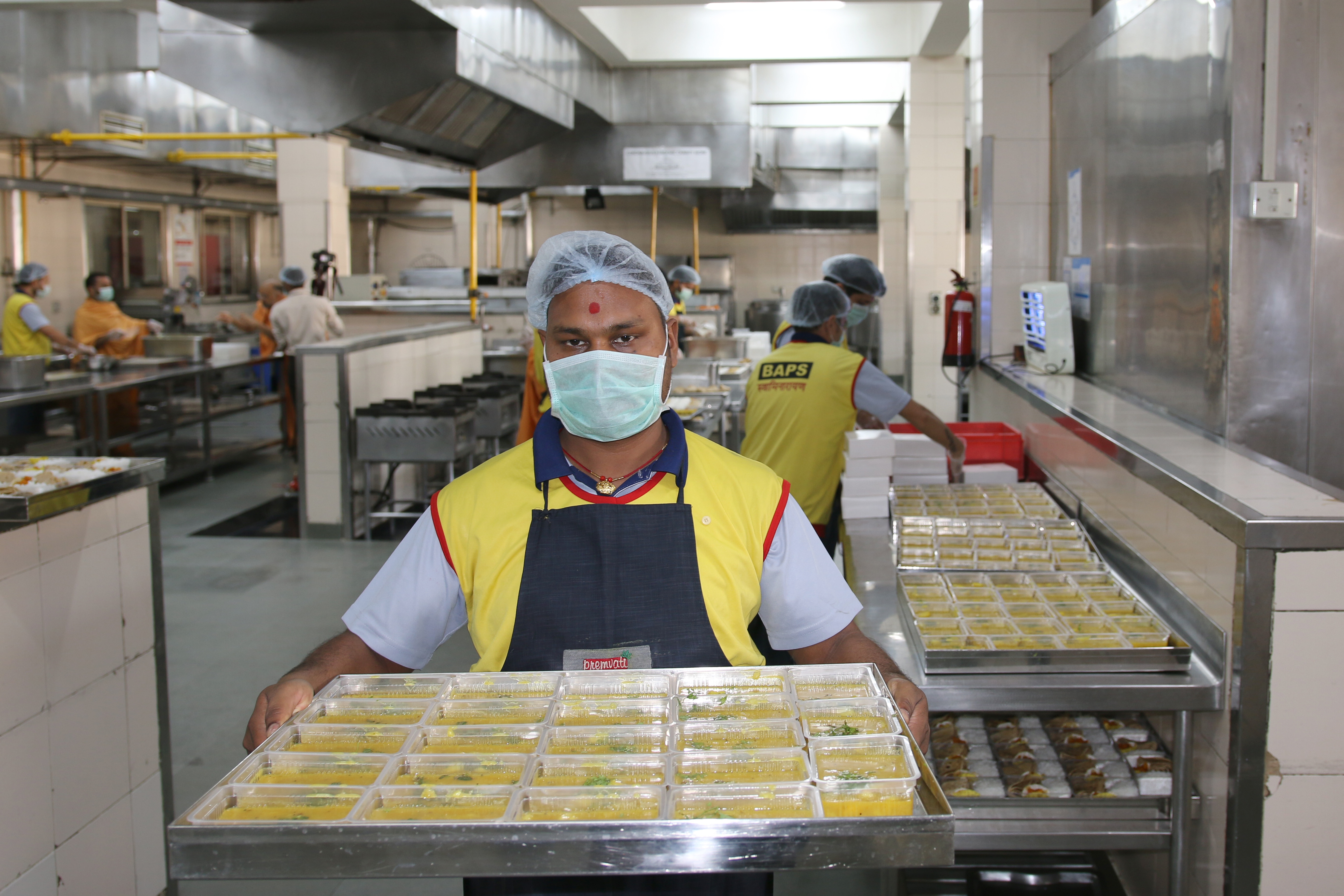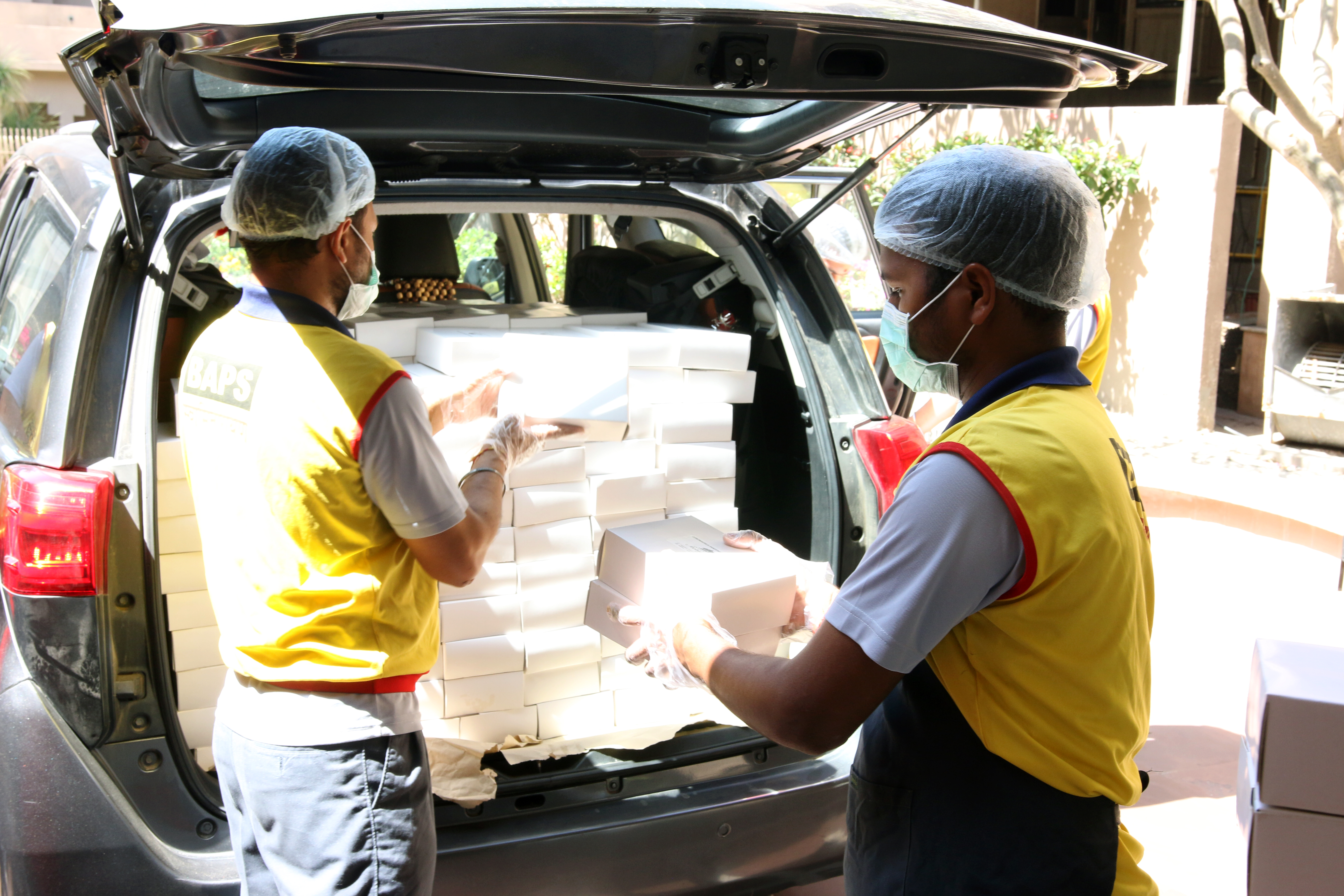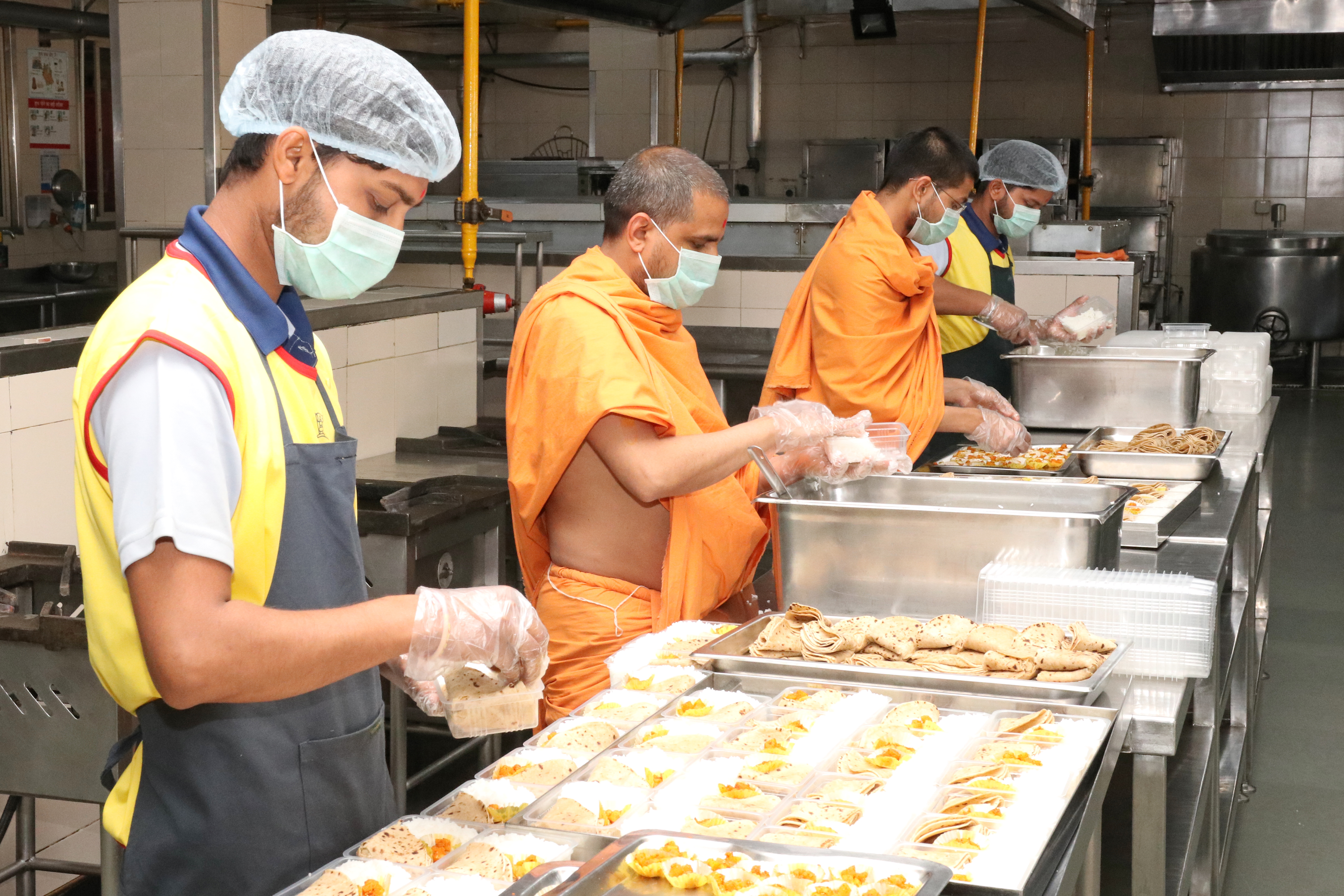 Prepared hot food packets by Swaminarayan Akshardham for New Delhi's poor and needy affected by the Coronavirus Pandemic