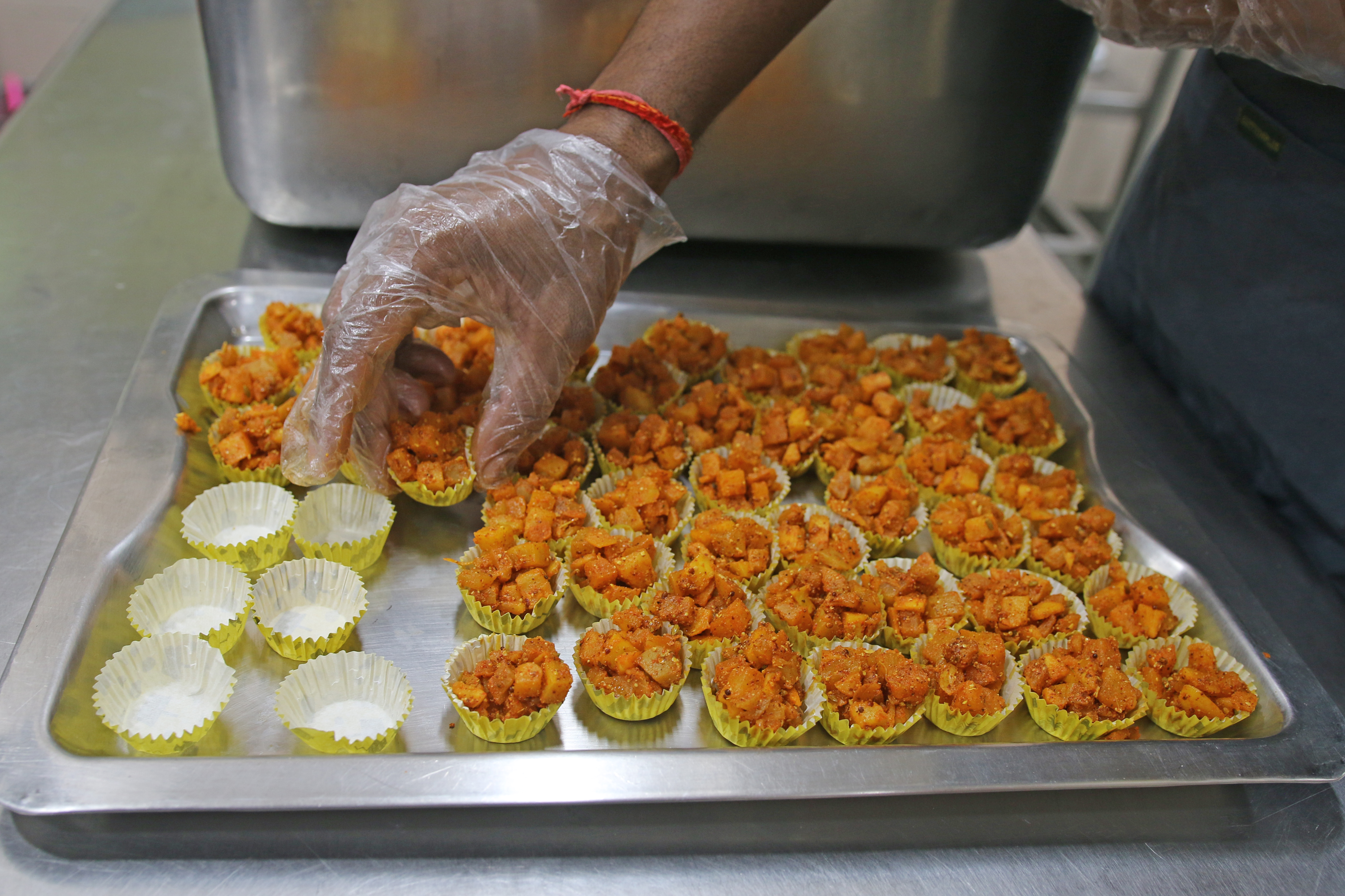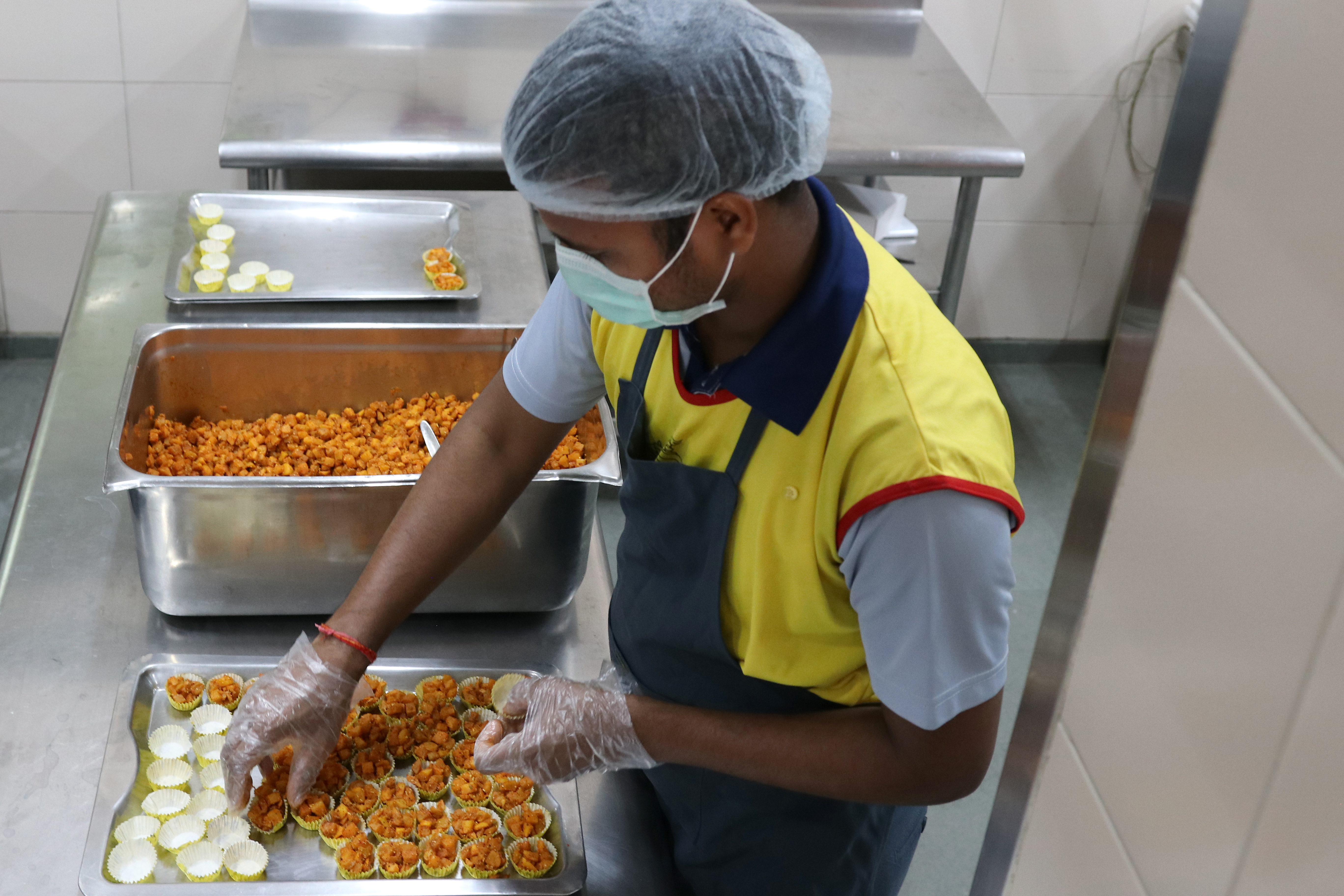 Volunteer prepares hot food packets for New Delhi's poor and needy affected by the Coronavirus Pandemic