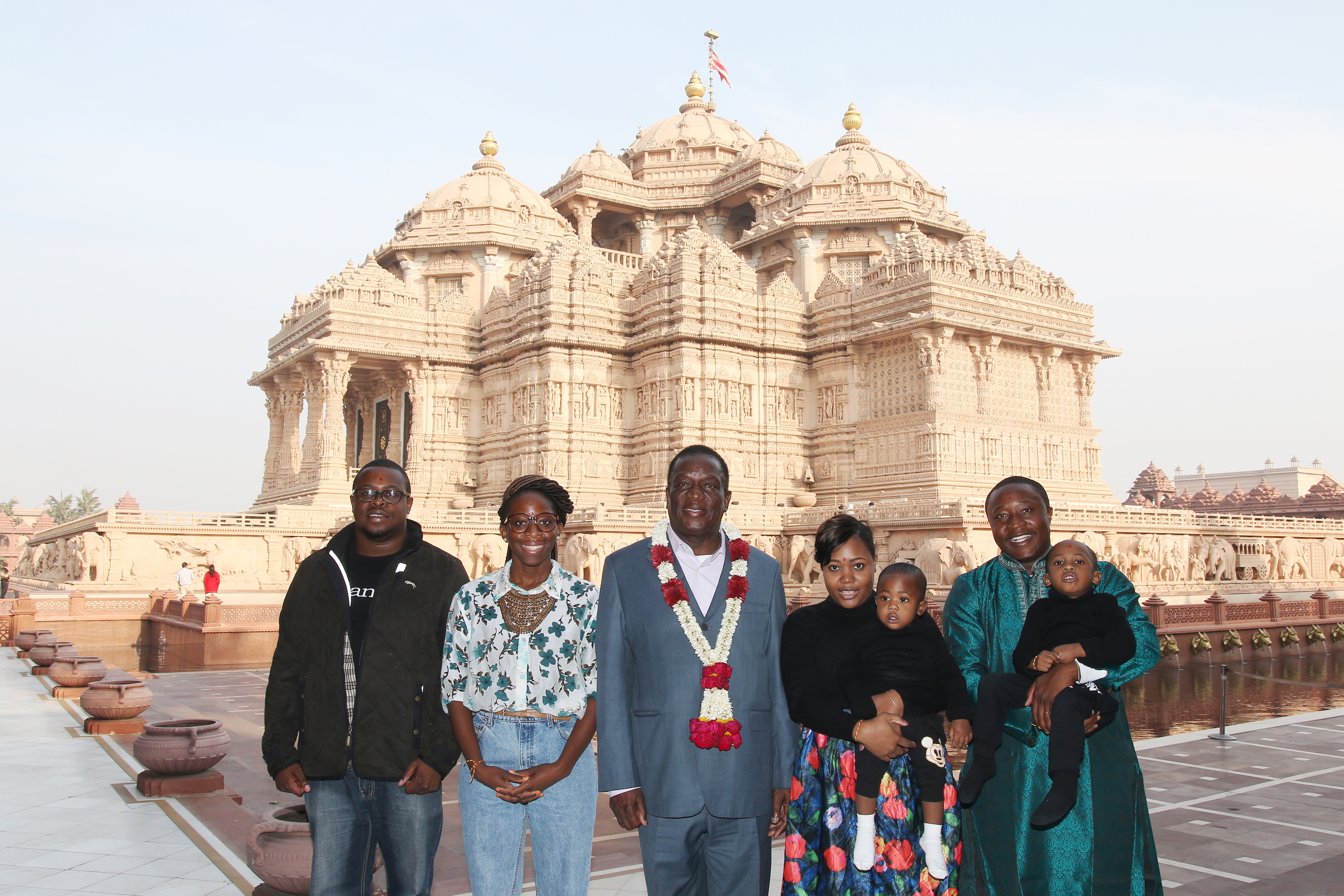 Zimbabwe Vice President Honourable Emmerson Dambudzo Mnangagwa and family visited Swaminarayan Akshardham in New Delhi to experience India’s ageless beauty, borderless culture and timeless values.